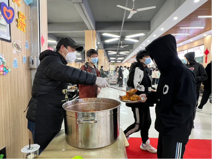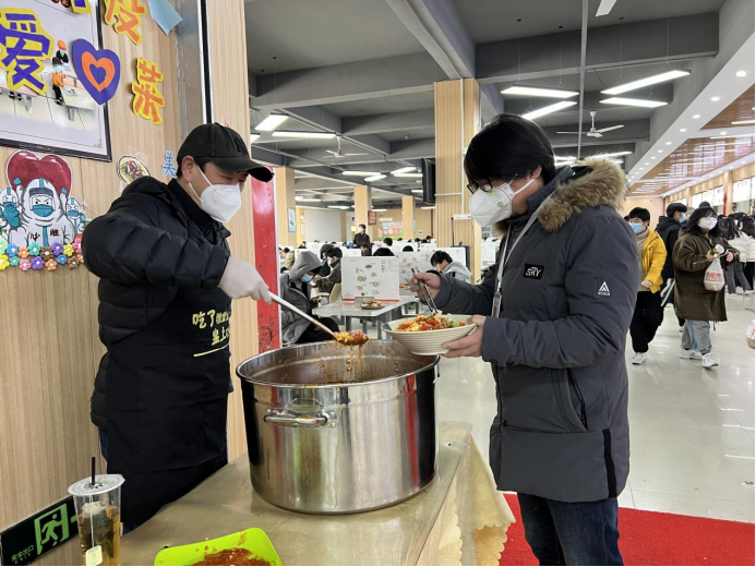為更好的做好疫情防控期間各項(xiàng)服務(wù)保障工作,同時(shí)將愛心捐贈(zèng)企業(yè)的善心、善舉傳遞給師生,學(xué)院在前期為學(xué)生免費(fèi)發(fā)放水果、雞蛋、方便面、油餅等食品的基礎(chǔ)上,又在一樓餐廳設(shè)立了兩個(gè)免費(fèi)愛心菜窗口,每天中午、下午各推出1-2道免費(fèi)菜品,希望通過(guò)此舉讓師生們感受到社會(huì)各界的關(guān)懷和溫暖,懂得感恩。自免費(fèi)窗口開設(shè)以來(lái),食堂師傅們各個(gè)大顯身手,精心為廣大師生烹制美食,天天不重樣,師生們已陸續(xù)吃到了西紅柿炒雞蛋、醋溜包菜、白菜燉粉條、炒土豆絲、鹽水鴨等美食。
