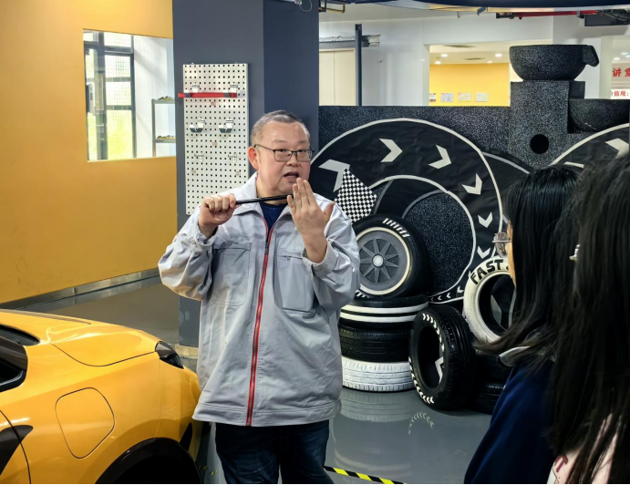 孫博老師以“汽車日常維護(hù)——更換汽車輪胎”為主要授課內(nèi)容,帶領(lǐng)學(xué)生由熟識常見交通安全標(biāo)識、車內(nèi)儀表盤指示燈開始,深入了解汽車安全常識。常識講解結(jié)束后,孫博老師又以圖文結(jié)合的方式,向?qū)W生詳細(xì)介紹了更換汽車備胎的七大步驟及注意事項(xiàng),指導(dǎo)學(xué)生使用素質(zhì)教育發(fā)展中心內(nèi)的樣車進(jìn)行備胎更換作業(yè),讓學(xué)生在動(dòng)手實(shí)踐的過程中樹立生產(chǎn)作業(yè)的安全意識,掌握隨車工具的使用方法,學(xué)會(huì)按照標(biāo)準(zhǔn)流程解決好汽車的小微故障,恢復(fù)車輛的正常行駛。