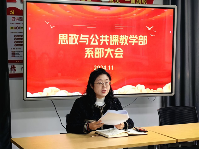 為貫徹落實(shí)學(xué)院“四系一部”體系建設(shè),推動(dòng)系部改組和后八周教學(xué)教研等工作的平穩(wěn)進(jìn)行,11月4日,思政與公共課教學(xué)部召開(kāi)首次系部大會(huì)。會(huì)議由思政與公共課教學(xué)部副主任韓璟主持,系部全體教師參加了本次會(huì)議。