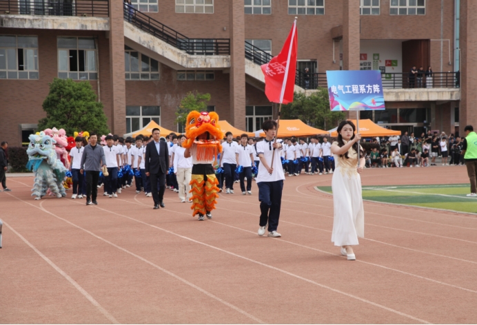 電氣工程系學(xué)生方陣別出心裁,把運動場化作巨型電磁場,紅色跑道上疾馳的身影仿若定向移動的電荷,象征著青年學(xué)子的熱血正為智能制造時代充電。