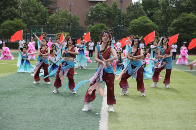 學(xué)生會彩旗方陣中,躍動的彩旗恰似莘莘學(xué)子昂揚向上的青春姿態(tài),盡顯“少年自有凌云志”的蓬勃力量。他們用旗幟編織夢想,以熱血詮釋擔當,為運動會奏響了最耀眼的開場樂章。