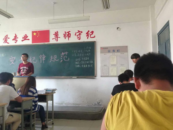 2015922日,我系以班為單位進(jìn)行了以安全紀(jì)律意識(shí)為主題的班會(huì),主要針對(duì)近期生活、學(xué)習(xí)中發(fā)生的安全違紀(jì)事件,提高學(xué)生的安全紀(jì)律意識(shí)。