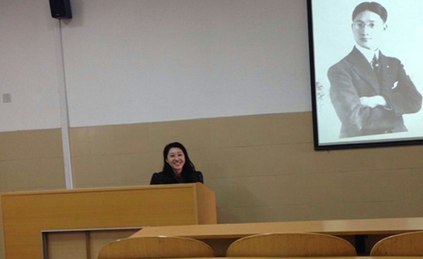 盧娜老師在講“再別康橋”。美麗的詩(shī)歌、才華橫溢的詩(shī)人經(jīng)過(guò)盧老師的渲染,字字璣珠敲打著每一位聆聽(tīng)者的心扉。