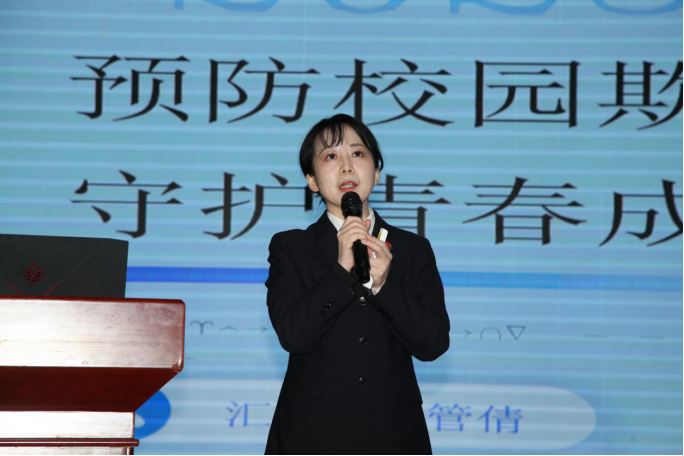 啟動儀式結(jié)束后,西咸新區(qū)檢察院未成年人檢察部干警管倩老師為現(xiàn)場師生帶來了一堂生動精彩的法治課。她以“預(yù)防校園欺凌,守護(hù)青春成長”為主題,結(jié)合自身辦案經(jīng)歷,以案釋法,深入淺出地講解了“校園欺凌”是什么、有哪些常見欺凌表現(xiàn)形式以及如何預(yù)防等內(nèi)容,通過互動問答、案例分析等形式,引導(dǎo)學(xué)生增強(qiáng)自我保護(hù)意識,提高防范不法侵害的能力,現(xiàn)場互動頻繁,氣氛活躍。