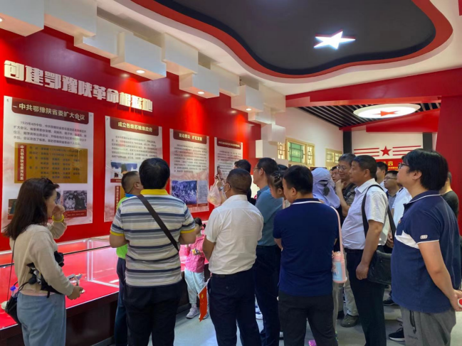 在紀念館工作人員的引導(dǎo)下,全體人員認真參觀了展示紅色歷史的三個展廳。每到一處,大家都仔細聆聽講解員對鄂豫陜革命根據(jù)地葛牌鎮(zhèn)區(qū)蘇維埃政府建立過程、紅二十五軍戰(zhàn)斗歷史的專業(yè)解說。參觀過程中,透過玻璃櫥柜觀摩那些紅二十五軍戰(zhàn)士曾經(jīng)用過的武器,尤其是聽到田銀斗等紅軍先烈的戰(zhàn)斗故事后,大家的思想深受洗禮。